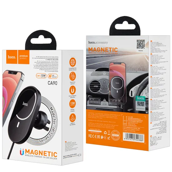 Автодержатель CA90 с беспроводной зарядкой HOCO черный