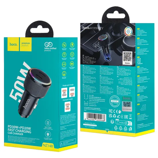 Автомобильное зарядное устройство NZ14B на 2 Type-C PD50W HOCO черный