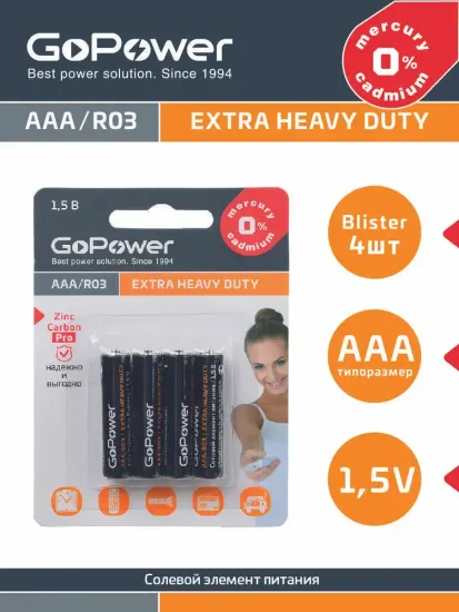 Батарейка AAA R03 GoPower Heavy Duty 1.5V (4 шт. в блистере)
