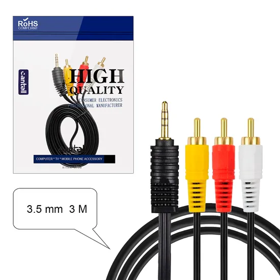 Кабель AUX 3.5 на 3 RCA никелистый 3M