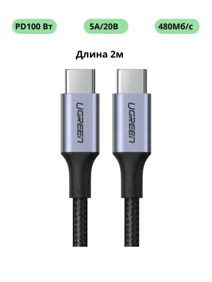 Кабель UGREEN US316 Type C to Type C 5A PD 100W в оплетке 2 м, цвет черный (70429)