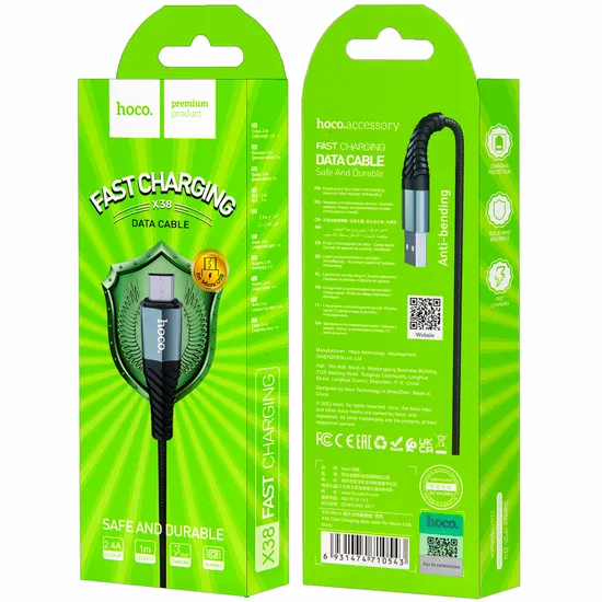Кабель X38 USB Micro USB 1m HOCO черный